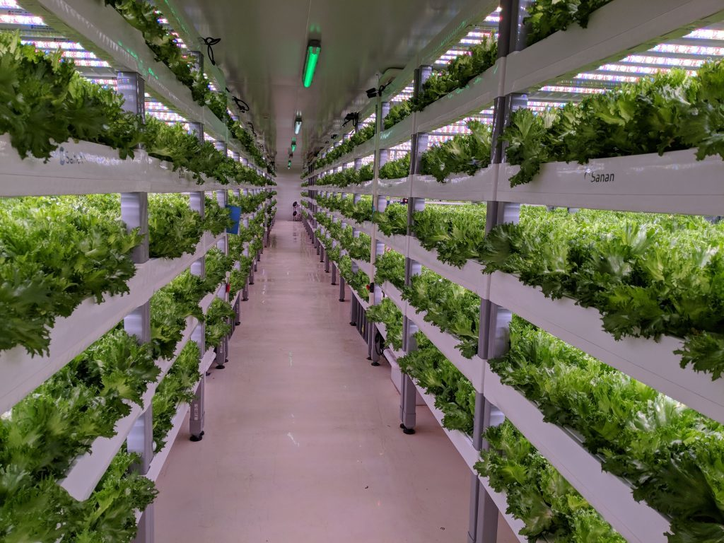 le coltivazioni sono realizzate in scaffalature impilate che ottimizzano lo spazio disponibile.